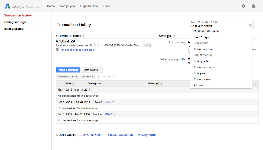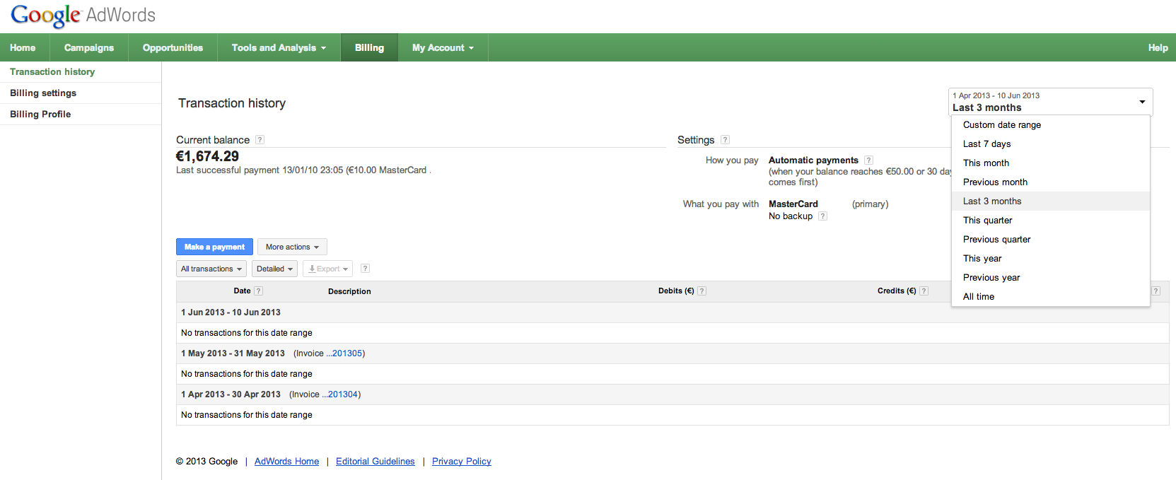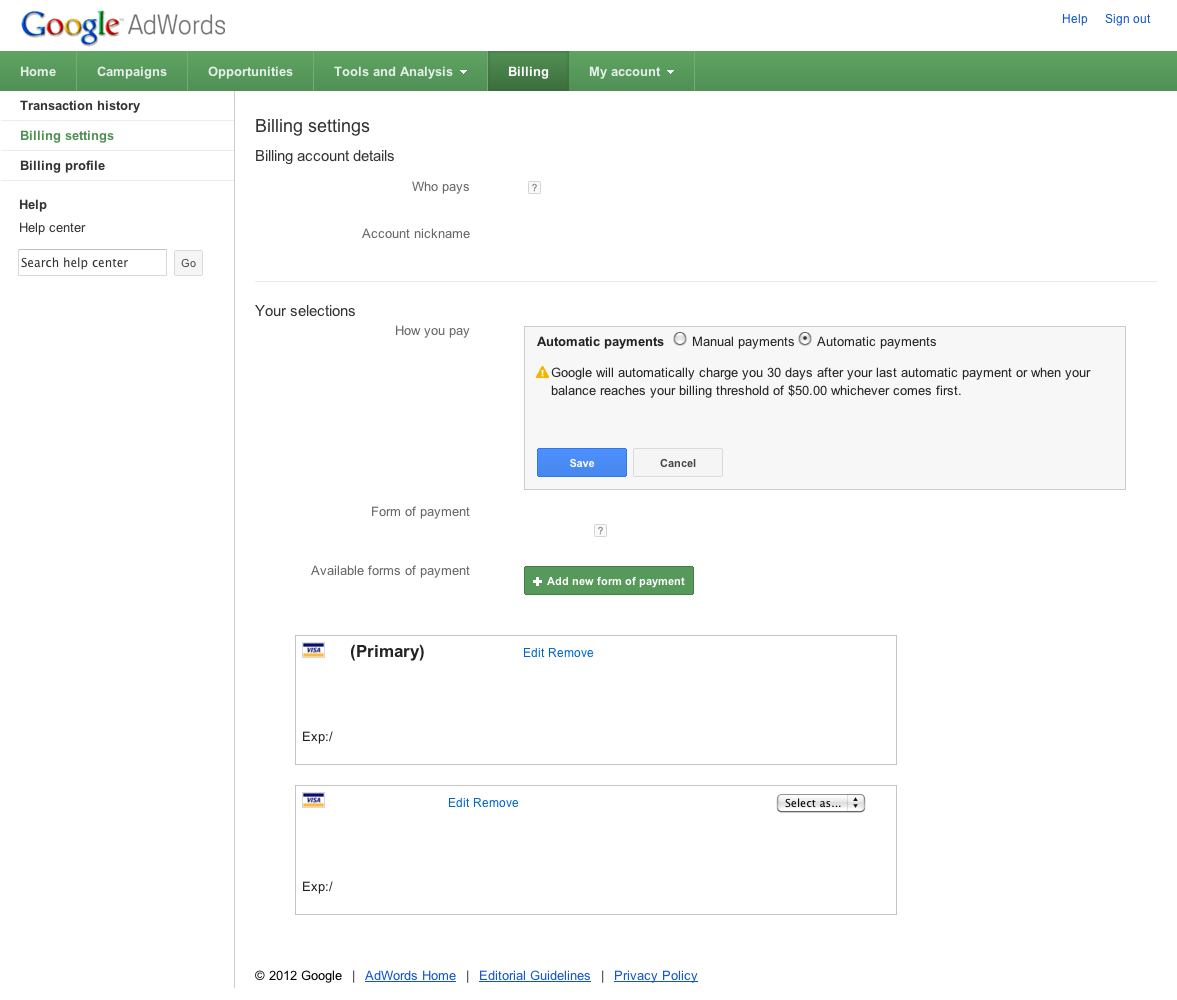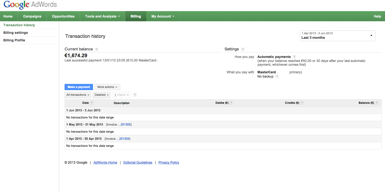 There is no minimum spending limit with Google AdWords View method of payment Change contact information Edit payment details Account Preferences Edit login, email address, password, display language Google maps AdWords Study Guide . ... Doc Retrieval